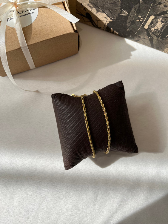 دستبند طنابی طلایی با طراحی خاص و ساختار بافتهشده، ترکیبی از استحکام و ظرافت را در خود جای داده است. این مدل دستبند با رنگ طلایی درخشان خود، جلوهای لوکس و در عینحال مینیمال به استایل شما میدهد.