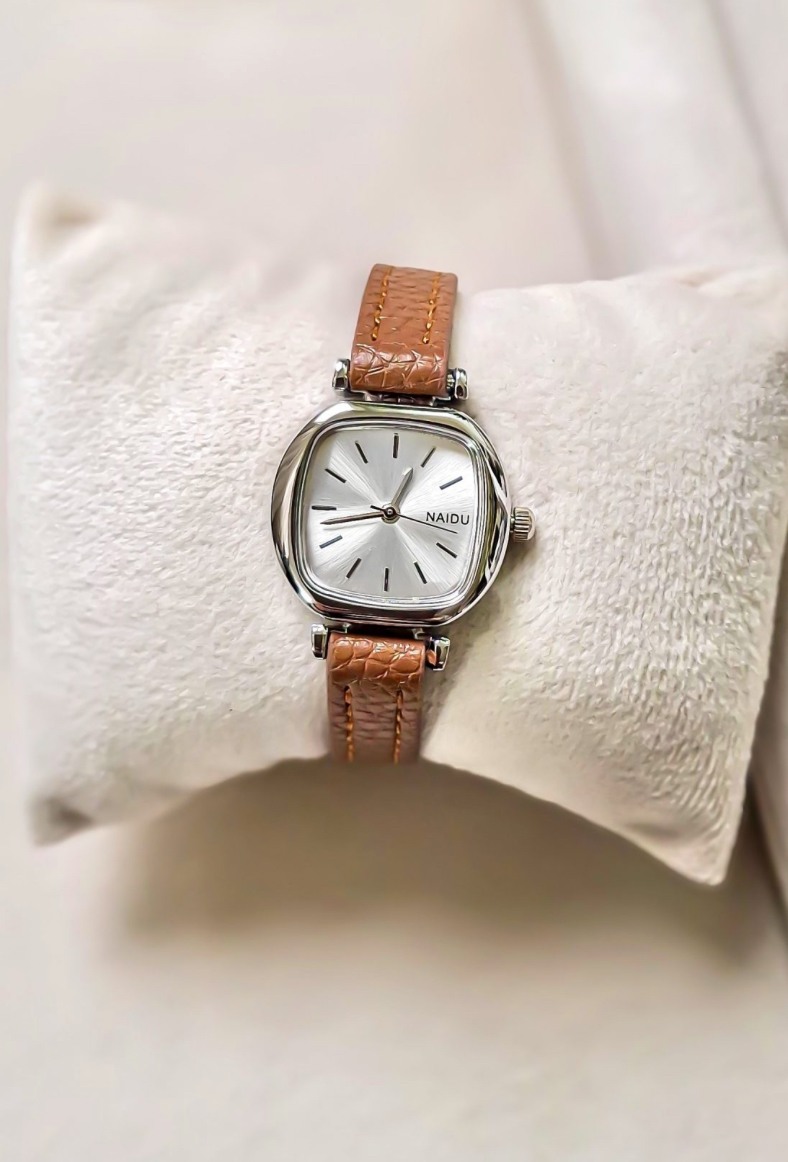 چرم باکیفیت دور دوخت موتور و باتری قابل تعویض طول بند ۲۱ سانت قطر صفحه ۱/۵ در ۲ حک برند پشت قاب یه کار خیلی مینیمال ناز و مدت طولانی براتون جوابه